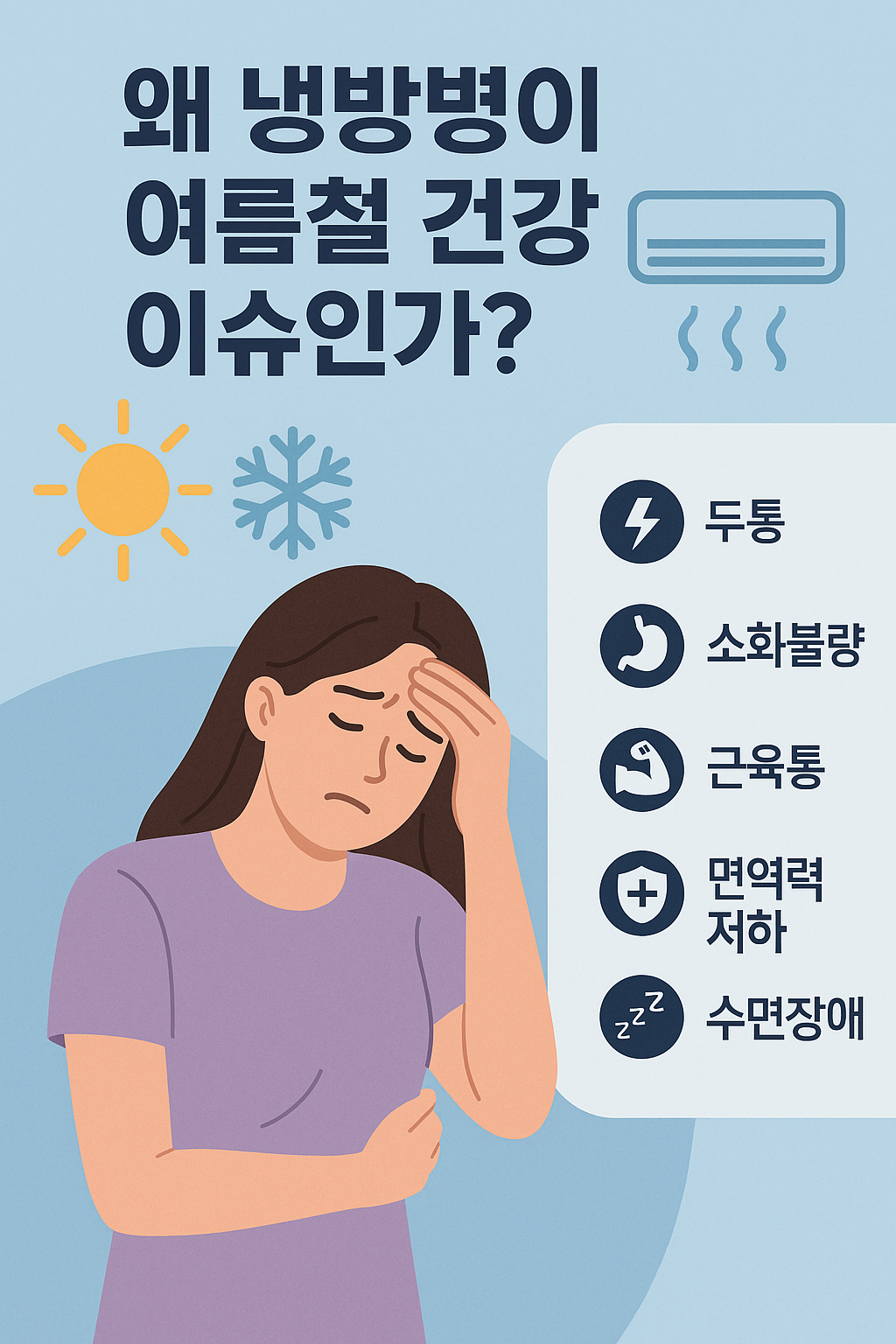 ‘냉방병(Cold-related syndrome)’은 정확히 말해 의학적 진단명은 아니지만, 온도 차와 냉기에 의해 자율신경계의 균형이 무너지고, 다양한 증상이 동반되는 상태를 일컫습니다. 대표적으로 두통, 소화불량, 근육통, 면역력 저하, 수면장애 등이 나타납니다. 서울대병원, 고려대의료원, 질병관리청 등 다수의 의료기관은 여름철 냉방기기 사용으로 인한 건강 이상에 대해 지속적으로 경고해 왔습니다. 국민건강보험공단의 2023년 자료에 따르면, 여름철(6~8월) 내원 환자 중 약 18%가 냉방병 관련 증상으로 진료를 받은 것으로 나타났습니다.