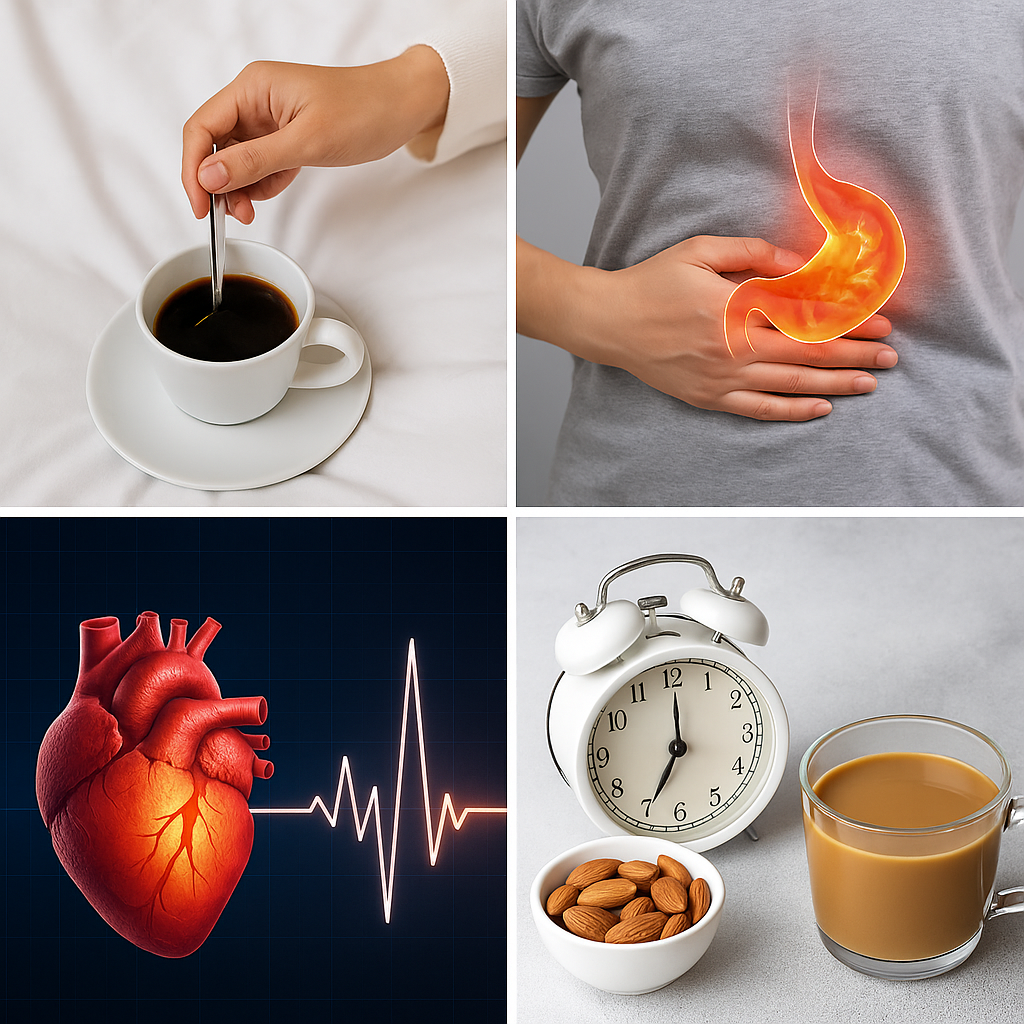 또한 카페인은 하부식도괄약근을 일시적으로 이완시켜 위산 역류 가능성을 높이며, 이는 공복일 때 더 두드러질 수 있습니다.