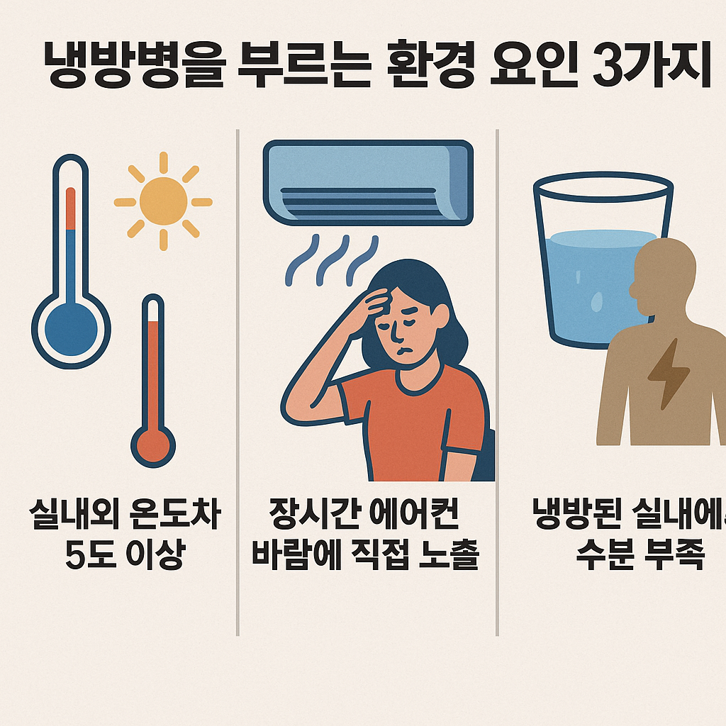 실내외 온도차를 줄이고 수분, 체온, 영양을 관리하는 루틴은 냉방병 예방의 핵심입니다.