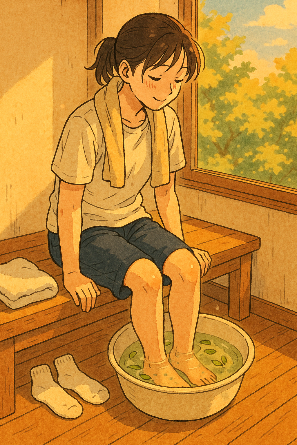 - 식초 물 족욕(물 1L당 식초 100ml): 산성 환경 조성으로 박테리아와 진균 번식을 억제합니다.