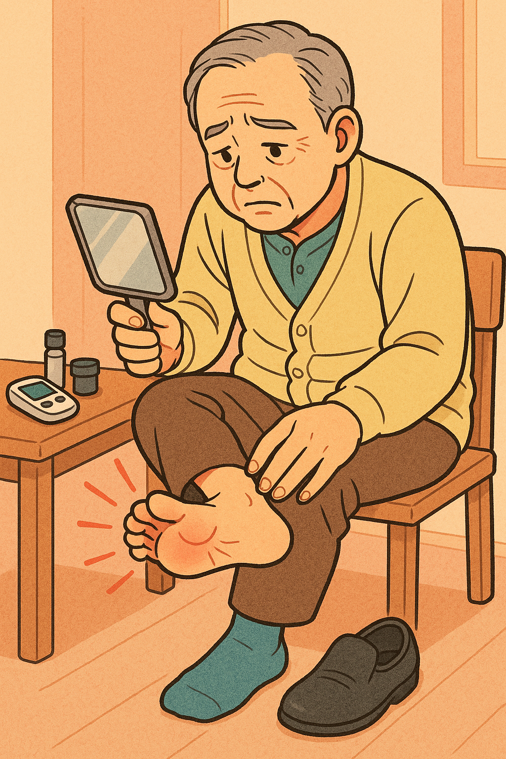 - 당뇨 환자는 감각 저하로 인해 상처를 놓치기 쉬우므로 매일 발 상태를 확인해야 합니다.